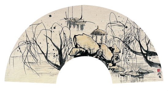 华宏仁 柳丝轻扬渔舟影 26×54cm 2009年