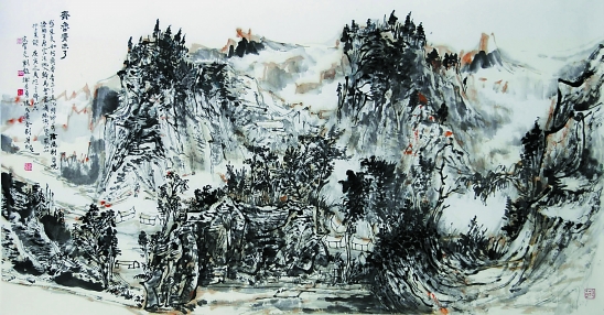 宋丰光 张民生 刘龙 谢景勇 合作 齐鲁青未了 98×198cm 中国画