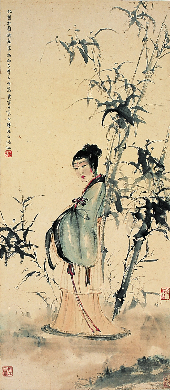 傅抱石 竹荫仕女图 设色纸本 镜片 85×37cm