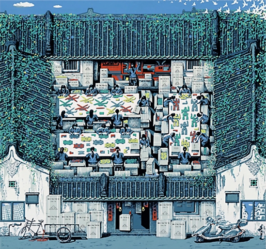 杜雄伟 农家工厂 版画