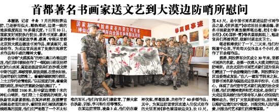 首都著名书画家送文艺到大漠边防哨所慰问