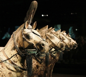 秦朝至今已有2200多年,秦陵铜车马仍光鲜亮丽地从1500公里之外的陕西驾至上海。隔着两千多年的历史时空,游客们从秦陵铜车马的威武架势想象着秦始皇出巡时浩浩荡荡的场面,秦代登峰造极的工艺更是让世人惊叹。已在陕西临潼兵马俑博物馆驻守了30多年的“一号铜车马”,第一次“整体出巡”上海世博会,成为中国馆的镇馆之宝。据悉,它的上海之行投保金额就高达1亿元人民币。
