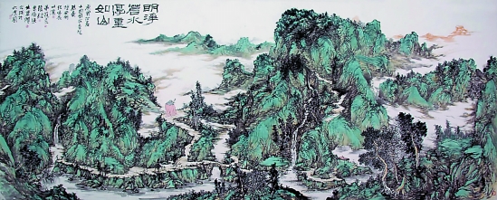毕冠良、叶浓、纪鸣辰、朱荣贤、陈安明、曹福强、熊曦、张铭 合作 诗意图 1500×3600cm