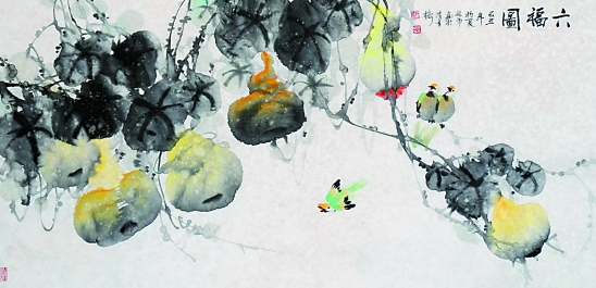阳子兑弟 六福图