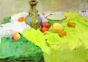 俞锦涛的这张色彩静物写生,色调关系明确,画面整体把握很好,各个物体塑造处理得当。但是,这张作品色调太过于简单,画面缺少重颜色,画面主体物缺少具体地塑造。但作品整体相对不错。希望在平时训练中,要注意塑造画境,刻画深入具体。