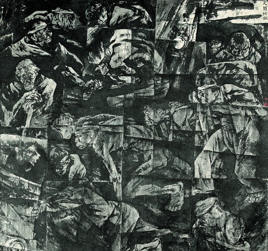 周思聪 矿工图——人间地狱 178×190 1982年 宣纸 水墨