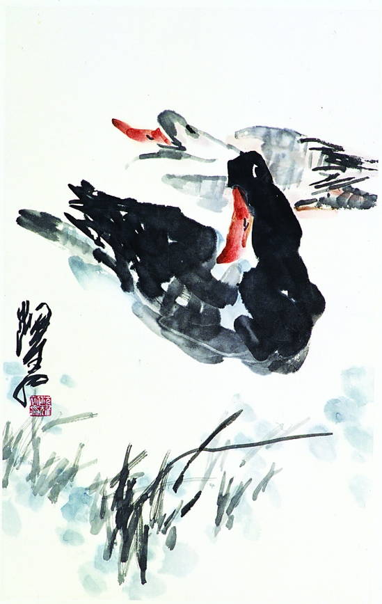 沈耀初 草塘双鸭