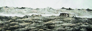 激情主导的创作还有另一种情况,即“重构”。所谓“重构”者,在激情驱动下,经深思熟虑,反复推敲,进而完成的作品。此类创作多鸿篇巨作,创作过程也较长,但激情始终贯穿创作的全过程。我曾有幸亲睹傅抱石先生1965年创作的《茅山雄姿》真迹,作品构图舒展,画面视野广阔,画面气势宏大,细看山峦走势,屋舍桥梁的安排,又极尽巧妙,节奏感非常强,读来让人心潮澎湃,又耐人回味,此乃激情“重构”之作。2006年,笔者赴山西河曲县赵家沟采风。对于一个生活在南方的画家,北方高原的雄浑、苍茫,深深震撼了我的心灵。回到南京,我先后创作了《高原的春天》、《夜沉沉》、《莽原》等作品。这些作品参照大量写生和图片,多经反复推敲构思,历经十数遍皴、擦、勾、染方才完成。创作的过程颇为艰辛,却饱含激情,待作品完成,如同完成一项浩大工程,成就感令人激动。回顾创作的过程,宛如梦境。