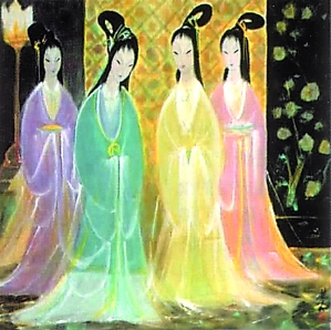 4.色彩强烈。林风眠用色善于将水彩、水粉、积墨一并使用,使色调沉稳和谐。2004年苏富比秋季拍卖会上,曾有一件林风眠晚年创作的《四美图》,从画上可以看出,他运用西画色彩的技巧,加上中国画的水墨效果,将画面的冷暖对比、明度对比处理得出神入化,在色彩斑驳中富有墨韵。