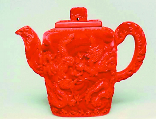 雕漆龙水纹紫砂方壶 李昌鸿设计制作
