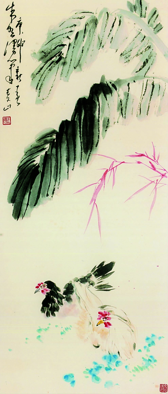 朱明 蕉荫双鸡