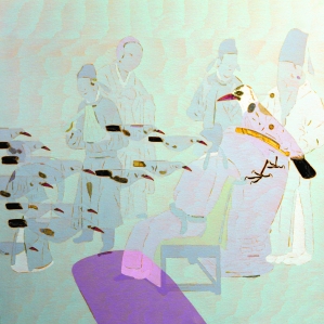 若从题材上将二者联起来看,我们又发现了“透技法”的第三个现代特征:“挪用传统”。无论是黄荃还是顾闳中,其艺术的视觉图像都被强行“挪用”,从中国传统美术特定的时代语义场中移入到杂乱无章的当代艺术领域当中。被“挪用”的传统因而丧失了其内在的文化内涵与美学意蕴,而它们之间所衍生出来的某种指示和关系又使画面异常丰富和神秘。
