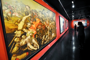 9月26日晚,第二届中国·江苏国际文化艺术周暨第五届亚洲美术馆馆长论坛开幕式,在南京人民大会堂举行。文化部副部长赵少华,江苏省委常委、宣传部部长杨新力分别致辞;来自蒙古、日本、韩国、柬埔寨、新加坡、印度、德国、澳大利亚、美国等18个国家的80位美术馆馆长及相关专家出席开幕式。“时代多彩——第十一届全国美展江苏获奖及入选作品汇展”、“南北二石——傅抱石齐白石中国画作品展”、“走进大师——中国美术馆藏路德维希捐赠作品展”三大美术展览,作为论坛专题展于9月26日至10月24日在江苏省美术馆举行。图为观众在欣赏《走进大师》展览现场欧美各国艺术家的作品。 孙参/摄