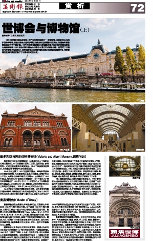 奥赛博物馆是由奥赛火车站改建而成,而奥赛火车站是因1900年巴黎世博会而建。为了迎接1900年巴黎世博会,巴黎专门建立一座火车站以解决巴黎的交通问题。奥赛火车站由建筑师拉露克斯(Victor Laloux)设计,大厅长138米,宽40米,高32米,以石质、钢和玻璃为材质,外表装饰为新古典主义风格,体现了当时先进的建筑技术。建成之后,它承担了巴黎世博会重要的交通重担,成为当时法国最华丽、流通量最大的火车站,犹如一座艺术宫殿般为世人称赞。