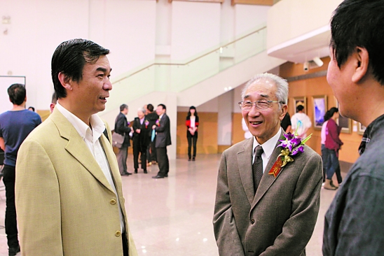 展厅里郭线庐副院长与靳尚谊先生交谈