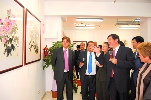10月20日,“亲情中华——何水法花鸟画展”在西班牙首都马德里汉文化中心开幕。中华人民共和国驻西班牙大使馆参赞董玉忠、领事部主任唐盛,西班牙福拉布拉达市副市长阿亚拉、副市长玛丽亚,浙江省侨联主席吴晶,西班牙侨领、和平促进会主席徐松华,西班牙华人华侨社团联谊会总会常务主席周志文等人出席了开幕式。