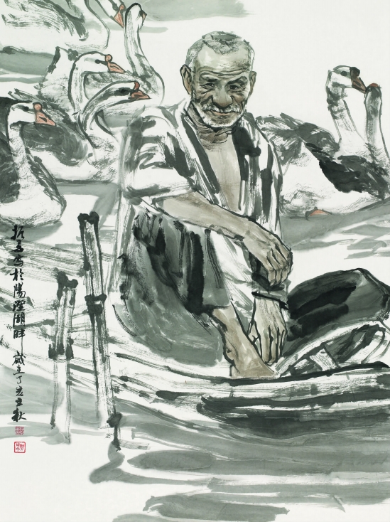刘振夏 阳澄湖畔牧鹅人(局部) 139×97cm