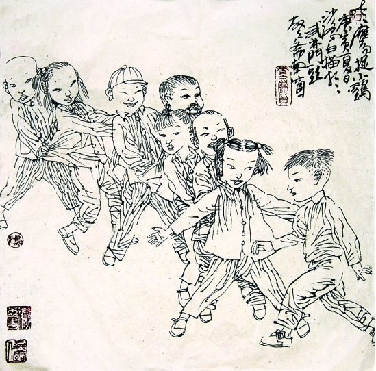 池沙鸿 老鹰抓小鸡 38×38cm 2010年