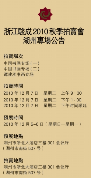 浙江骏成2010秋季拍卖会 湖州专场公告