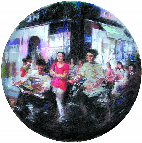 原晋远(浙江杭州) 女装街掠影 色粉画