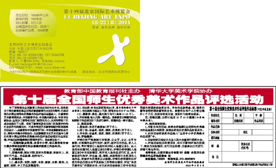为了贯彻落实全国教育工作会议和《中共中央、国务院关于深化教育改革全面推进素质教育的决定》的精神,在成功举办历届全国师生优秀美术作品评选活动基础上,在教育部艺术教育委员会、中国教育学会、中国美术家协会、中国书法家协会、全国少工委等有关部门领导的关心、支持和帮助下已成功地举办了九届,受到了教育部及有关部门的高度评价和社会各界的热情关注,已成为我国艺术教育领域中较高规格的活动之一。由教育部中国教育报刊社、中国老摄影家协会主办,清华大学美术学院协办,北京静鹤斋文化艺术交流中心承办的第十届全国师生优秀美术作品评选活动现面向全国征稿,评选活动将继续按历届程序进行。具体事宜如下: