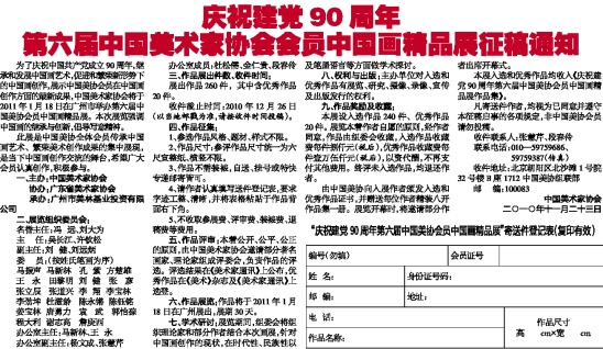 庆祝建党90周年 第六届中国美术家协会会员中国画精品展征稿通知