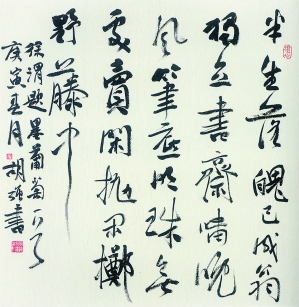 真水无香既是一种人生境界,又是一种艺术境界。艺术作品自然可以有多种风格,萝卜青菜,各有所爱。但真正要修炼到恰如一泓清水,无色无香的境地,绝非易事。毫无造作,不加修饰,自然天成,见情见性,总是艺术的极高境界。有了“真水无香”,心中便有了艺术操守的定盘针。当然,这不仅需要作者有一定的功力,还要有一股静气,大静之气,弃杂之气,滤已之气。我在读胡强的书法篆刻作品中,读到了他的这种向往和追求。