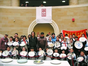 “第三届美术报艺术节暨2010美术报年度人物颁奖仪式”后,在陕西省美术博物馆的圆厅,艺术家和来自西安高新第二学校的小朋友在瓷盘上挥毫互动创作,艺术家们即兴发挥,为新生代的孩童们亲临指导,学生们感受着艺术的饕餮盛宴,小朋友们的可爱和天真以及表现出来的热情也不停地打动着每一个艺术家和参观的朋友们,此时大家都深深地融入到这个艺术节日中。