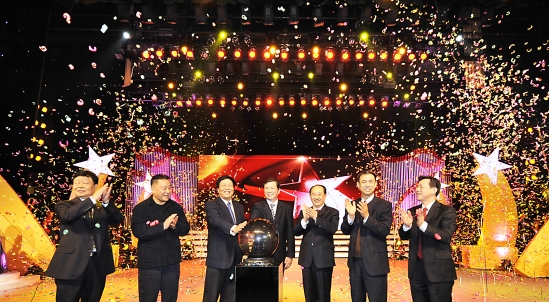 (从左至右)王西京、邓理、胡悦、李牧、郑小明、刘斌、吕峻涛启动基金会成立