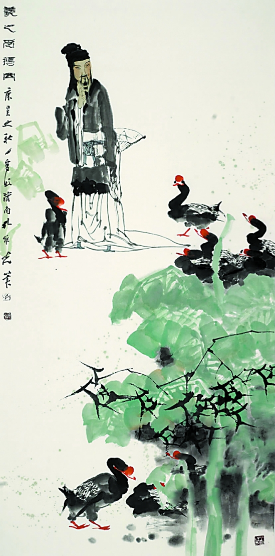 孔维克 羲之爱鹅图 68×136cm 纸本水墨 中国画 2010年