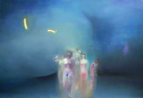 ▲许东升的作品《雷霆前的遁离》深受安哲罗普洛斯电影叙事风格的影响,利用混沌空间中的光线和面目模糊的人物来表达思想。作者尽力控制介于真实和想象之间的微妙平衡,在模棱两可的表述中传达一种悲剧性的美感。在油画中能够传达悲剧美感,这图像本身的品位就足以让评委动容。