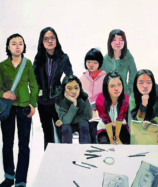 ▲张伟的作品《恰同学少年之最后一课》偏向于上个世纪九十年代的“新生代”绘画类型,擅长用传统学院式油画写实手法,对日常生活中普通人进行细致描绘,并从中表达自己的人生态度。张伟常年关注处于高中阶段的在校青年学生这一特殊群体,独特的视角构成了作品独特的视觉体验。