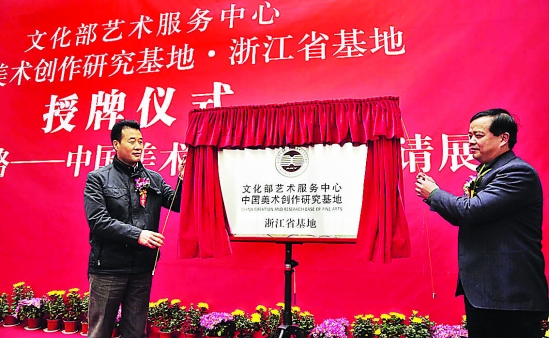 文化部党组成员、部长助理高树勋,文化部艺术服务中心主任胡克为浙江省基地揭牌。