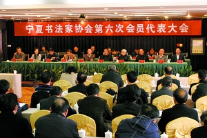本报银川讯 全一 瑞鑫 11月22日,宁夏书法家协会第六次会员代表大会在银川召开。自治区文联党组书记、主席郑歌平,副主席冯明、郭刚、哈若蕙,秘书长马学礼等出席了大会开幕式;宁夏书坛老前辈刘正谦、王邦秀、柴建方、尹旭、马学智、郭守中等亲临大会表示祝贺;自治区武警总队政委程伟少将,自治区政府办公厅副主任崔晓华,自治区林业局局长王德林,宁夏日报报业集团副社长、总经理王强,自治区总工会原副主席谭云协,自治区武警总队政治部副主任李新善等也莅临祝贺。