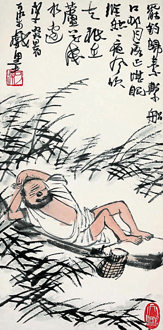 李可染 渔夫图 70.1×34cm