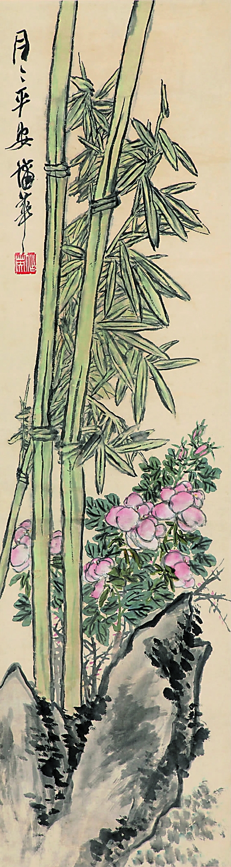设色纸本 立轴 141×38cm