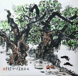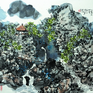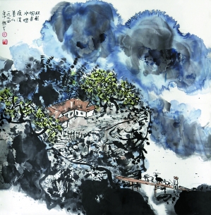 更重要的是受教于吕凤子的陈作丁,在继承文人山水画的经典时,始终注意以当代意识拓展传统的视野,努力以“大传统”的开放视野构建新的艺术语言体系。为此,除了对民族文化精神有较深的涉猎和独到的感悟外,还借鉴近亲艺术、民间艺术乃至西方艺术的一些手法和观念,并有选择地融入大写意语言体系之中,从而形成“为我所用”的开放的“大传统”范畴,在现代转型中,为中国大写意山水画的发展增添了新的内涵和活力。