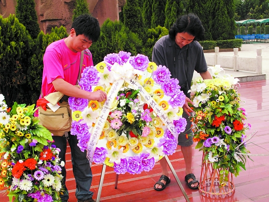 采风团在熄烽集中营纪念碑前向烈士敬献花圈