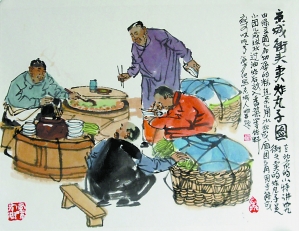 看马海方的京味风情人物画,相当于看一次北京风俗专题展,可以让观众近距离地了解老北京天桥文化,了解老北京的民俗风情。