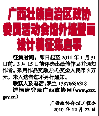 广西壮族自治区政协 委员活动会馆外墙壁画 设计稿征集启事