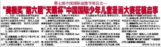一、主办: 中国国际动漫节执委会 中国青少年宫协会 中国动画学会 中国少年儿童造型艺术学会 浙江人民美术出版社《幽默大师》 杭州市人民对外友好协会
