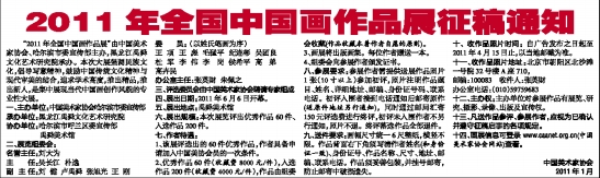 “2011年全国中国画作品展”由中国美术家协会、哈尔滨市委宣传部主办,黑龙江禹舜文化艺术研究院承办。本次大展强调民族文化,倡导写意精神,鼓励中国传统文化精神与现代审美的结合,追求学术高度,推出精品,推出新人,是集中展现当代中国画创作风貌的专业性大展。
