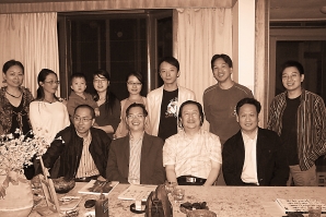 时任西安美院院长杨晓阳(前排右二)、美术报总编蔡景富(前排右三)、西安美院国画系副主任乔宜男、浙江大学特聘教授吕继刚等作客午社(摄于午社会所)