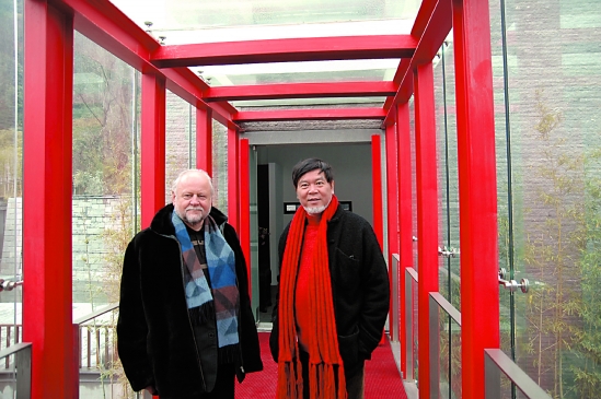 何水法、安德烈在杭州抱华楼国画研究院