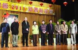 联谊会上,林岫主席率北京书协在京主席团成员在台上向书协全体同仁拜年,并致以新春的慰问和美好祝福。她在致辞中简要回顾了北京书协在过去一年里精诚团结、励精图治所取得的成绩,同时提出了2011年北京书协的工作思路和打算。随后,一些擅长唱歌、京剧、魔术、相声的书协会员,轮番上场,即兴表演了丰富多彩的文艺节目。联谊会始终洋溢着和谐、吉祥、欢乐的节日气氛。