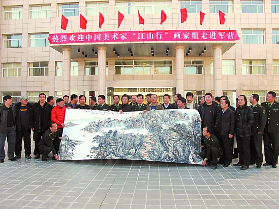 2010年11月中国美术家江山行画家组应中国人民解放军某部邀请,前往军营与解放军官兵进行文化交流,并向部队赠送作品。