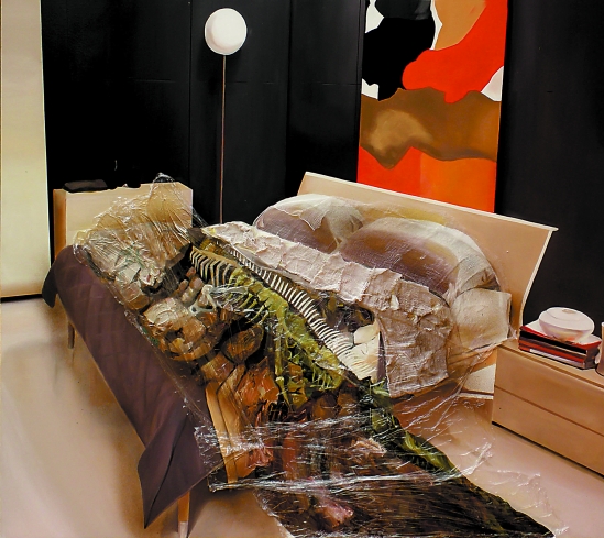 傅泽南 平面装置风格——被保鲜膜覆盖的古化石 布面油画