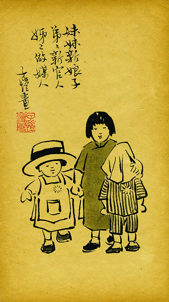 丰子恺 妹妹新娘子 弟弟新官人 姐姐做媒人 绘画