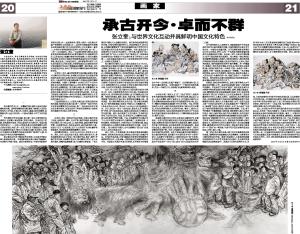 作为国防大学专业画家,张立奎一直以中国传统的水墨语言,追求着人物画更新、更高的境界。但他对这个更新、更高境界的追求,不是以复古的方式进行的。他是在现代性的意义上,一方面,以传统水墨文化思想资源为其形式语言显现之本原,另一方面,则以当下国家意识主旋律为其终极价值旨归,将西方文艺复兴以降(包括现代、后现代)的视觉文化资源作为构成其画面的“物质性”元素,而完成其个性化的风格学建构的。