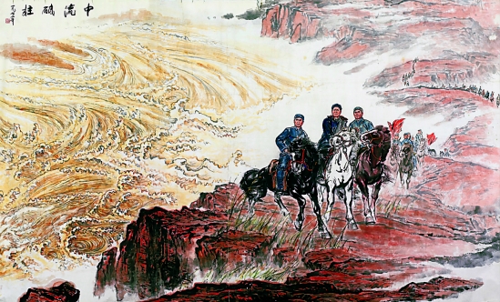 周沧米 中流砥柱 国画 182×300cm 1972年